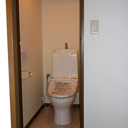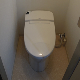 | 概要 | 築30年以上の木造住宅のトイレで、トイレの奥行きが1m未満の為 現行のトイレの中でも奥行き最少の商品を選定。(LIXIL サティス E タイプ) |