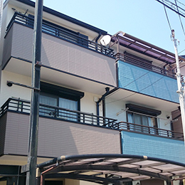 | 外壁 | 高耐久・低汚染・防カビ性の水性シリコン系塗料 オーデフレッシュ Si100Ⅲ(日本ペイント(株))でバルコニー部とその他壁面色分け |
