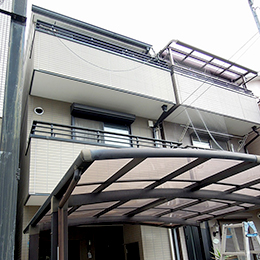 | 総額 | 1棟 約100万(合計200万) (仮設足場・高圧洗浄・シール打ち・下塗り・中塗り・上塗り・雑部(樋・雨戸等)・テラスポリカ脱着含む) |